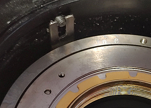 Je me demande, en regardant le Schéma, si, ce n'est pas moi qui eut pu provoquer cette panne, car, en effet, quand je l'ai acheté et reçu, la bague des ouvertures n'était pas accessible car renverée; le vendeur m'avais dit de dévisser deux petites visses et retourner de un demi tour la plaque de l'objectif car, démonté pour le nettoyage, il a été bloqué en l'inverse. J'avais exécuté cette manœuvre, il était droit et ça déclenchait bien, mais, je n'avais pas contrôlé si le diaphragme s'ouvrait et fermé… je me demande…